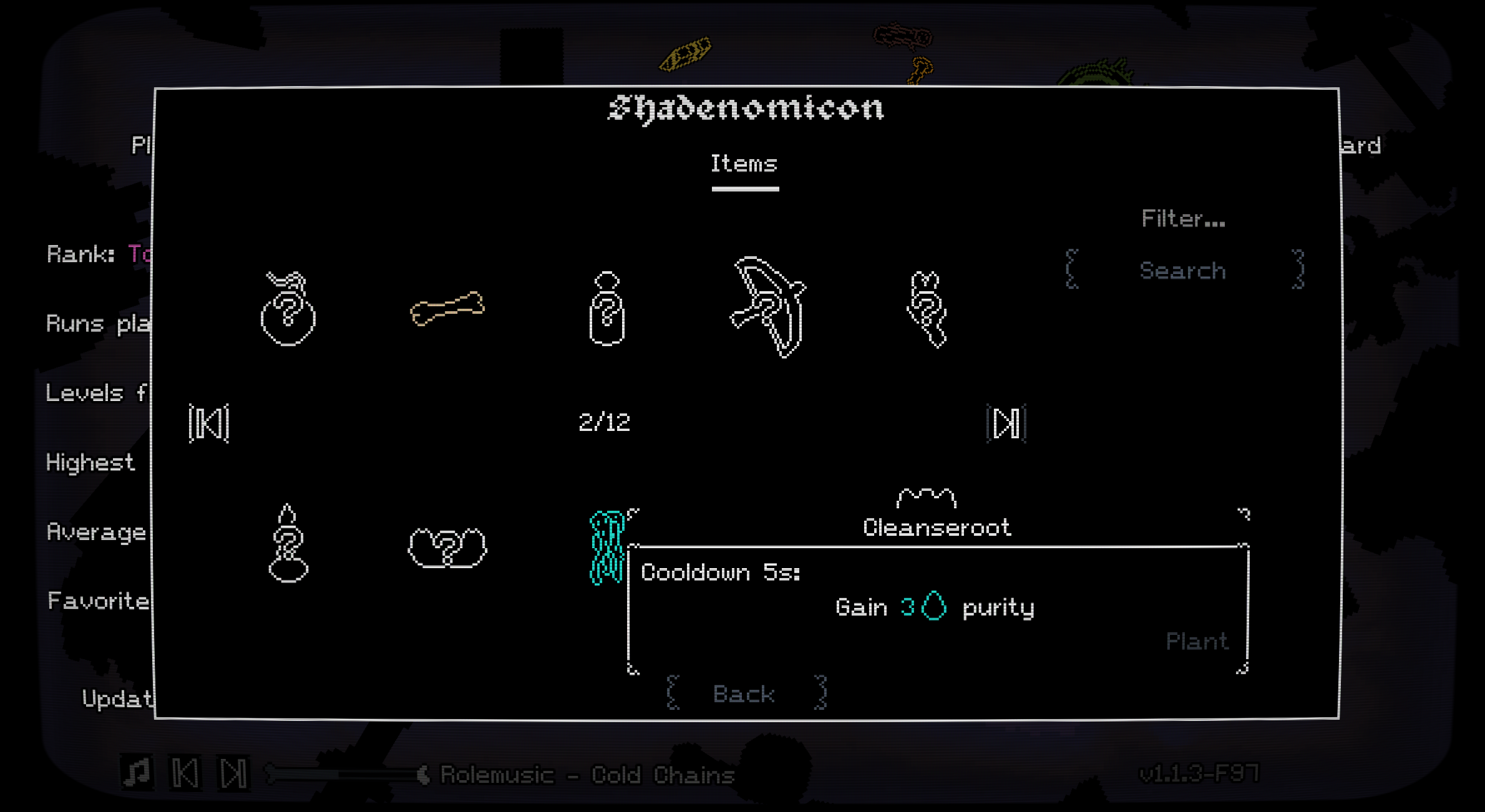 Just added a Shadenomicon to the game. It's a library that will display all of the items you've used in the game and gives hints to the unknown ones.