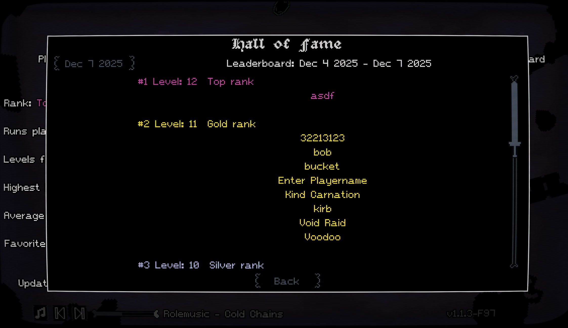 I also added a Hall of Fame that will display past scoreboard leaders across all game versions.